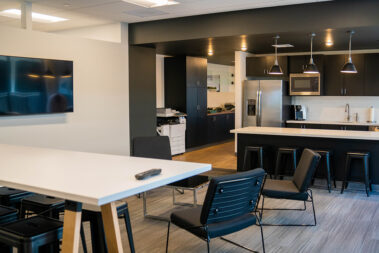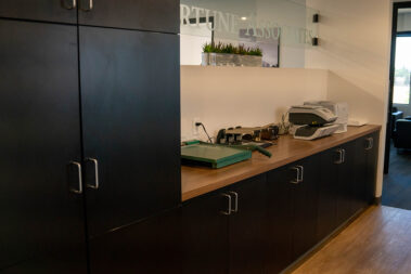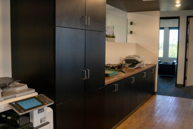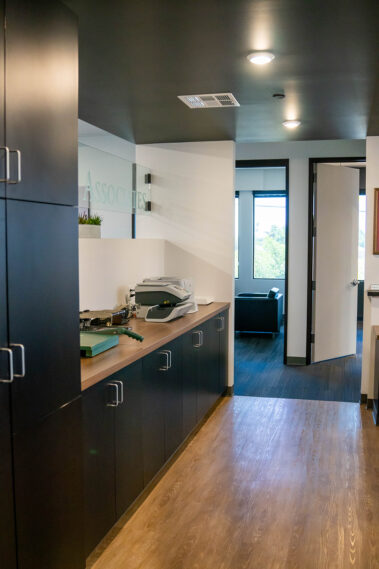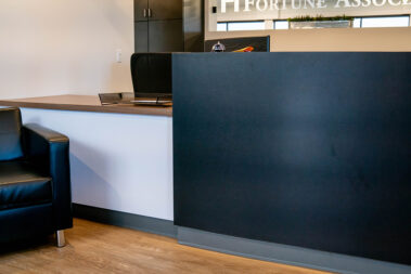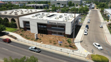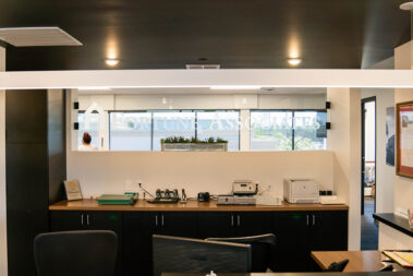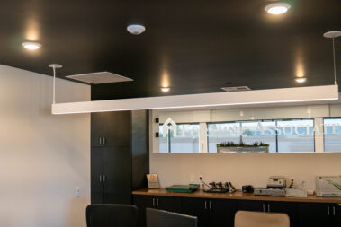 There were four projects associated with this building. First was the Fortune Façade Project 15,000 SF. Work consisted of a complete renovation of the exterior finishes of the building, including landscape removal and replacement to bring the building to much more drought tolerant setting, replaced all the HVAC units on the buildings, resurfaced and restriped the parking lot, poured new ADA access to the front door, added new entry glazing at the north and south elevations, upgraded the courtyard with new concrete, railings and stairs, updated both the bathrooms upstairs. The next three were tenant improvements (TI’s) for suites 200, 201 and 205. The TI renovation work was a complete gut of the old spaces and new floorplans with new finishes throughout: work included new electrical, plumbing, HVAC, wall, ceilings, flooring, cabinets, paint and fire sprinklers.